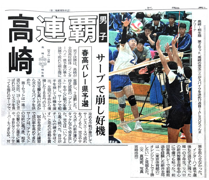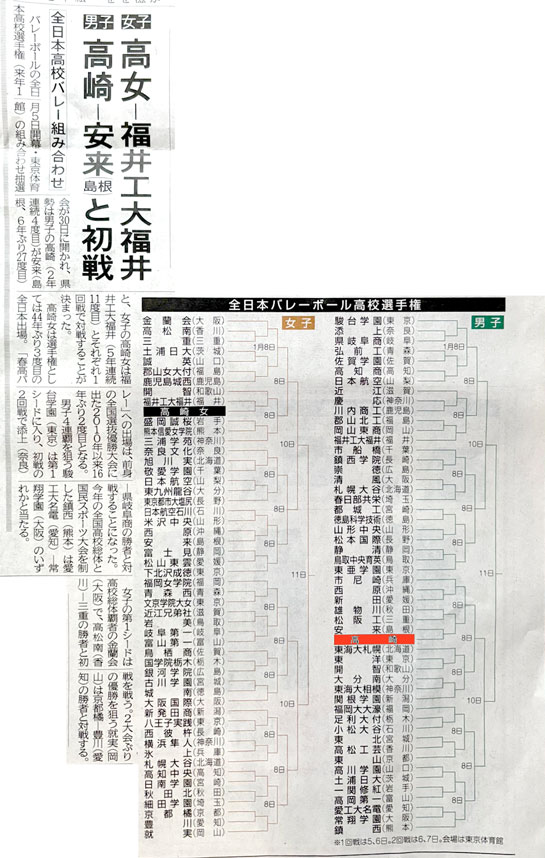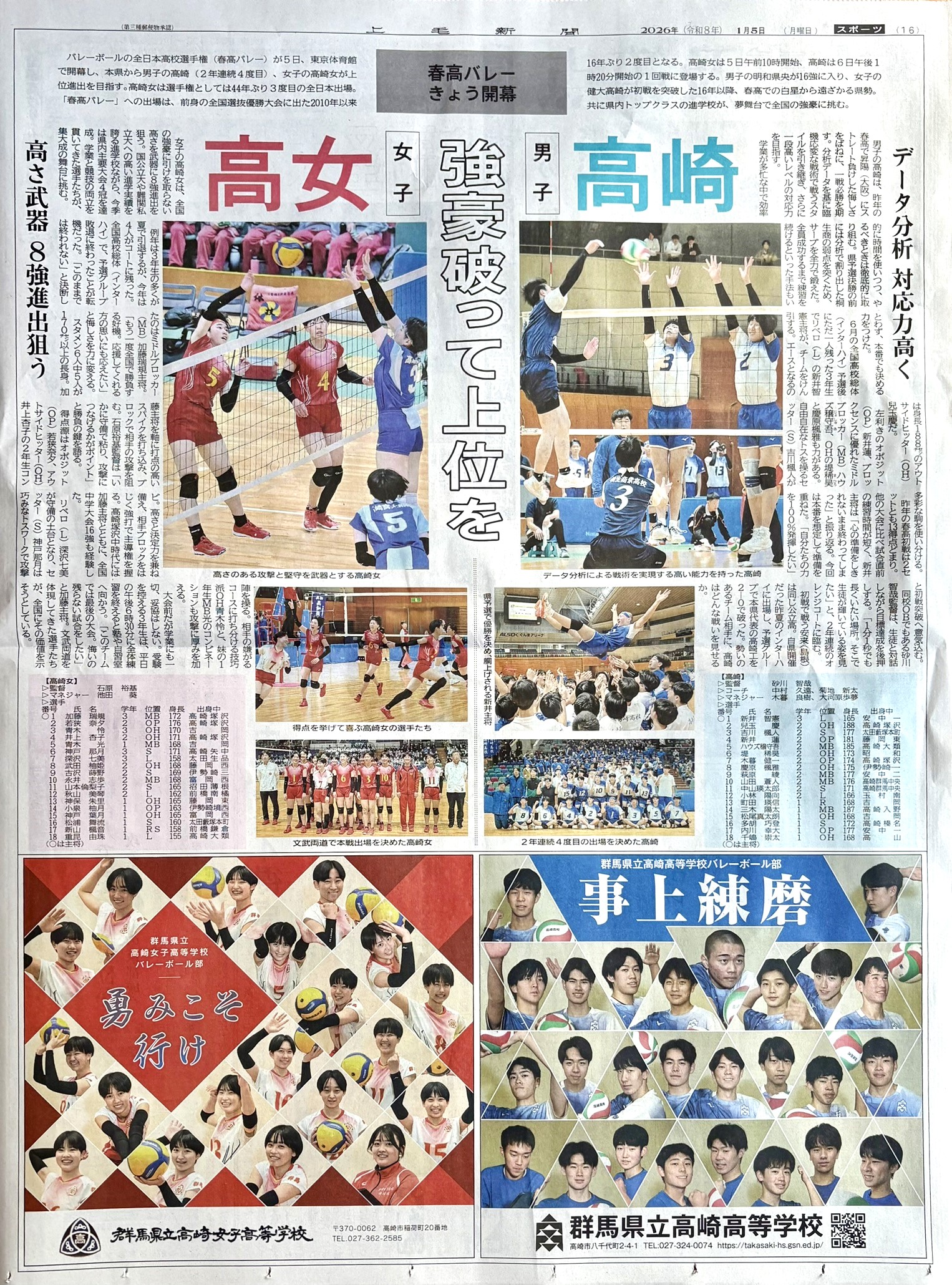 - 高々バレーボール部の春高バレー(リンクは上毛新聞掲載記事です)の試合がいよいよ明日に迫りました。みんなで応援しましょう!! 関連HPは参考までにリンクを貼っておきます。
